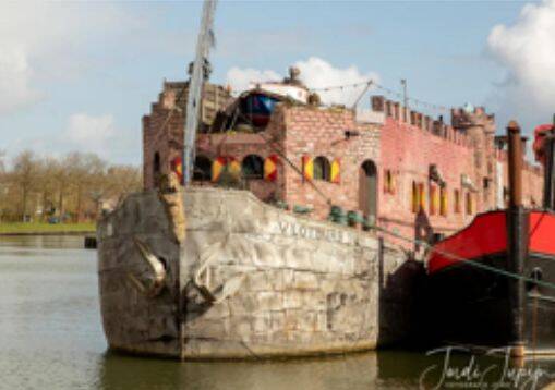 Zeker tot eind april ligt de museumboot er weer, voor ons aan de overkant bij de Blauwe Brug. Een unieke boot wat eigenlijk een middeleeuws kasteel is. Meer info in de download.