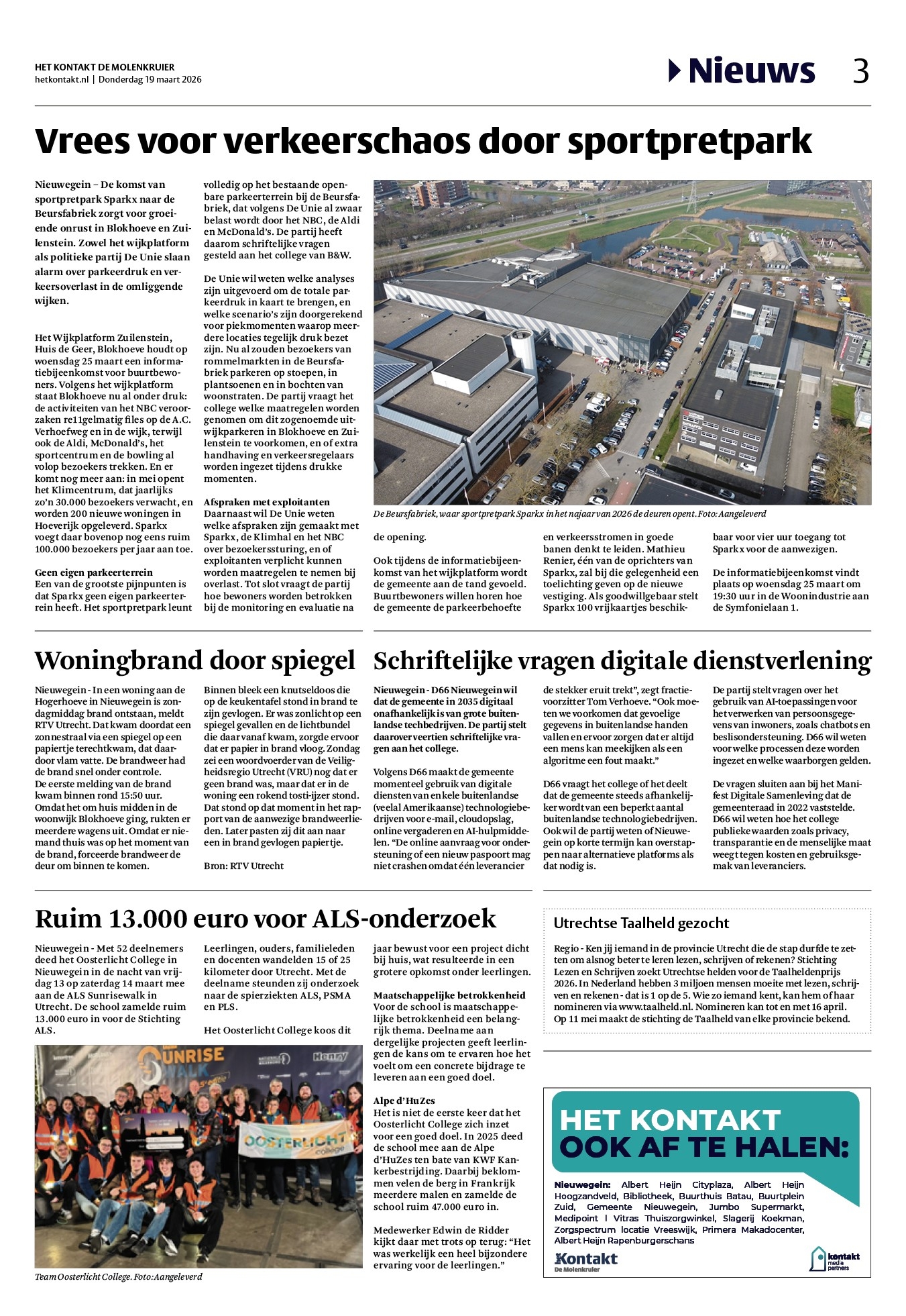 Op woensdag 25 maart 2026 organiseerde het Wijkplatform Zuilenstein, Huis de Geer, Blokhoeve een informatiebijeenkomst over de komst van het grootste indoor sportpretpark in Europa in de wijk Blokhoeve (Nieuwegein). De bijeenkomst werd gehouden in de Woonindustrie, Symfonielaan 1. Het bedrijf Sparkx hoopt dit “sportainmentpark” dit najaar te openen in de Beursfabriek. Er worden 100.000 bezoekers per jaar verwacht.