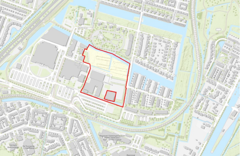 Aan de zuidzijde wordt het plan HoeveRijk (Blok West) als woon-werk locatie ontwikkeld. Het plan bestaat uit verschillende type woningen (stadswoningen, twee-onder-een-kapwoningen, appartementen en studio’s) voor een brede doelgroep in een parkachtige omgeving. Het groen en water worden het bindmiddel. Een herkenbare woonwijk met een geheel eigen identiteit en een fijn open woonklimaat. Naast woningbouw worden in dit plan een nieuw klim- en bergsportcentrum, een Aldi en een nieuwe sportschool Fit for Free gerealiseerd. Hieronder staat een weergave van de bestaande locatie en daaronder een impressie van de nieuwbouwplannen. Kijk hier voor bron en meer informatie en hier voor de huidige stand van zaken.